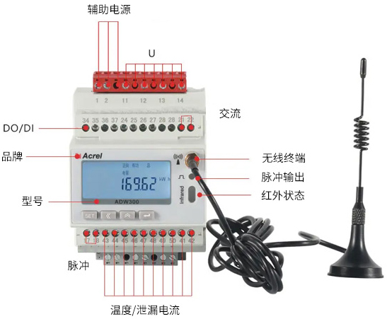 ADW300無(wú)線計(jì)量?jī)x表主要用于計(jì)量低壓網(wǎng)絡(luò)的三相有功電能,具有RS485通訊和470MHz無(wú)線通訊功能,方便用戶進(jìn)行用電監(jiān)測(cè)、集抄和管理。可靈活安裝于配電箱內(nèi),實(shí)現(xiàn)對(duì)不同區(qū)域和不同負(fù)荷的分項(xiàng)電能計(jì)量,統(tǒng)計(jì)和分析。