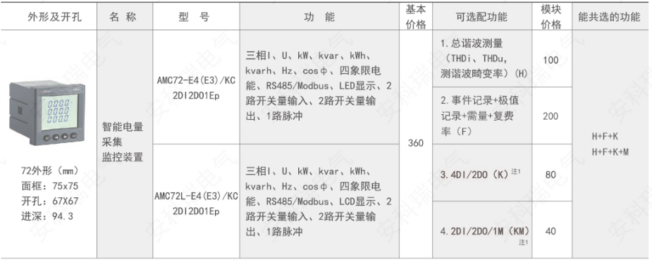 AMC 系列可編程智能電測(cè)儀表是針對(duì)電力系統(tǒng)、工礦企業(yè)、公用設(shè)施、智能大廈的電力監(jiān)控需求而設(shè)計(jì)的智能儀表,它集成電力參數(shù)的測(cè)量(如單相或者三相的電流、電壓、有功功率、無(wú)功功率、視在功率、頻率、功率因數(shù))以及電能監(jiān)測(cè)和考核管理。采用高亮度 LED/LCD 顯示界面,通過(guò)按鍵來(lái)實(shí)現(xiàn)參數(shù)設(shè)置和控制,非常適用于實(shí)時(shí)電力監(jiān)控系統(tǒng)。可以直接取代常規(guī)電力變送器及測(cè)量?jī)x表。作為一種智能化、數(shù)字化的前端采集元件,該儀表已廣泛應(yīng)用于各種控制系統(tǒng)、SCADA 系統(tǒng)和能源管理系統(tǒng)中。