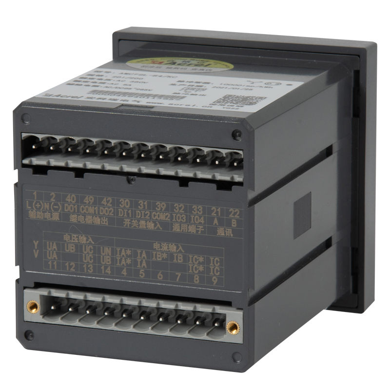 它集成全部電力參數(shù)的測(cè)量(如單相或者三相的電流、電壓、有功功率、無(wú)功功率、視在功率、頻率、功率因數(shù)等)、復(fù)費(fèi)率電能計(jì)量、四象限電能計(jì)量、諧波分析以及電能監(jiān)測(cè)和考核管理。多種外圍接口功能:帶有RS485/MODBUS-RTU協(xié)議;帶開(kāi)關(guān)量輸入和繼電器輸出可實(shí)現(xiàn)斷路器開(kāi)關(guān)的“遙信”和“遙控”的功能,采用LCD顯示界面,通過(guò)面板按鍵來(lái)實(shí)現(xiàn)參數(shù)設(shè)置和控制,非常適合于實(shí)時(shí)電力監(jiān)控系統(tǒng)。