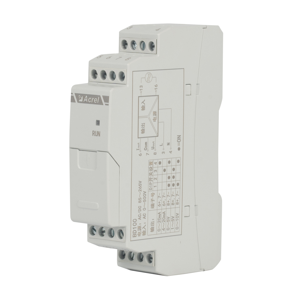 BD100系列電量變送器是一種將電網中的電流、電壓電參量,經隔離變送成線性的直流模擬信號或數(shù)字信號裝置。產品符合GB/T13850-1998、IEC-688 標準。