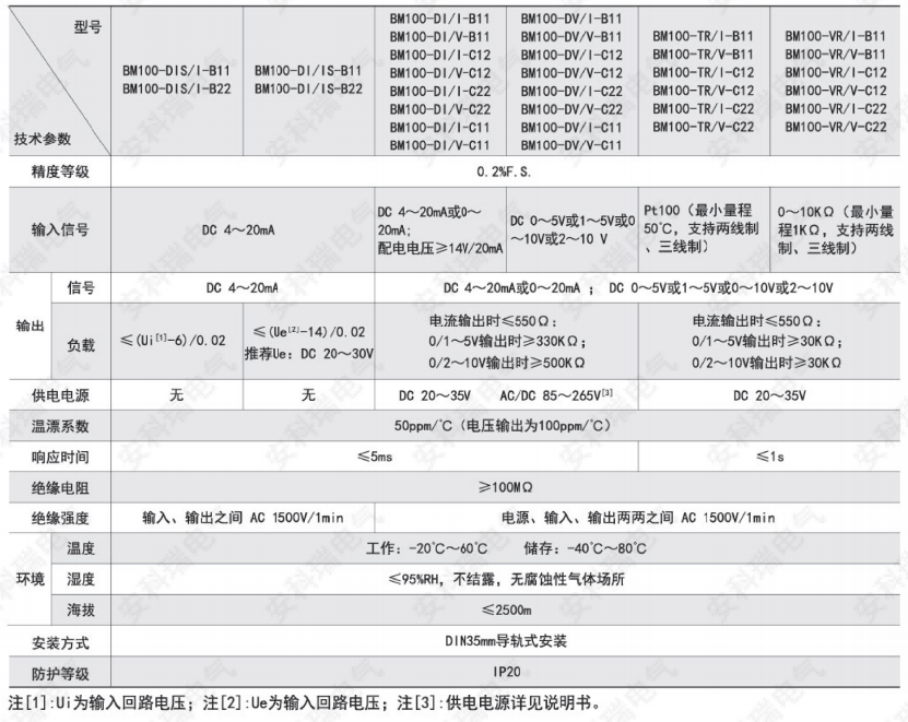 BM100系列信號隔離器可以對電流、電壓等電量參數或溫度、電阻等非電量參數進行快速精確測量,經隔離轉換成標準的模擬信號輸出。既可以直接與指針表、數顯表相接,也可以與自控儀表(如PLC)、各種A/D轉換器以及計算機系統等設備配接。