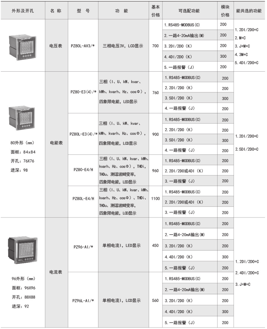 該系列儀表采用交流采樣技術,能分別測量電網中的電流、電壓、功率、功率因數和電能等參數。可帶RS485通訊接口、模擬量數據轉換、開關量輸入/輸出等功能,實現電力參數、電氣元件工作狀態的遠程傳輸,便于后臺監控系統集中檢測。