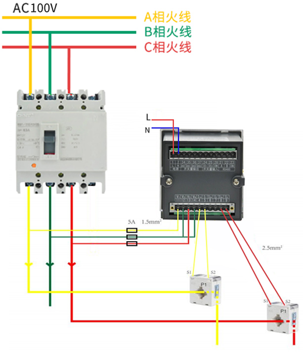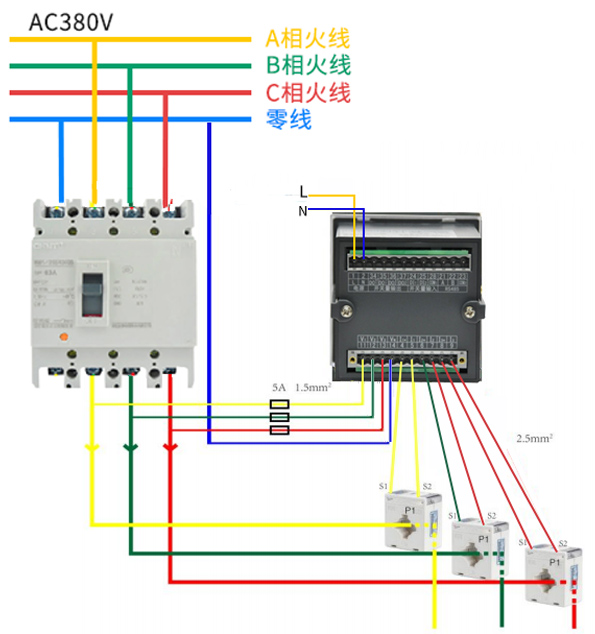 技術要求:輸入相電壓220V;電流變比400A/5A;接線方式三相四線;準確級0.5級。