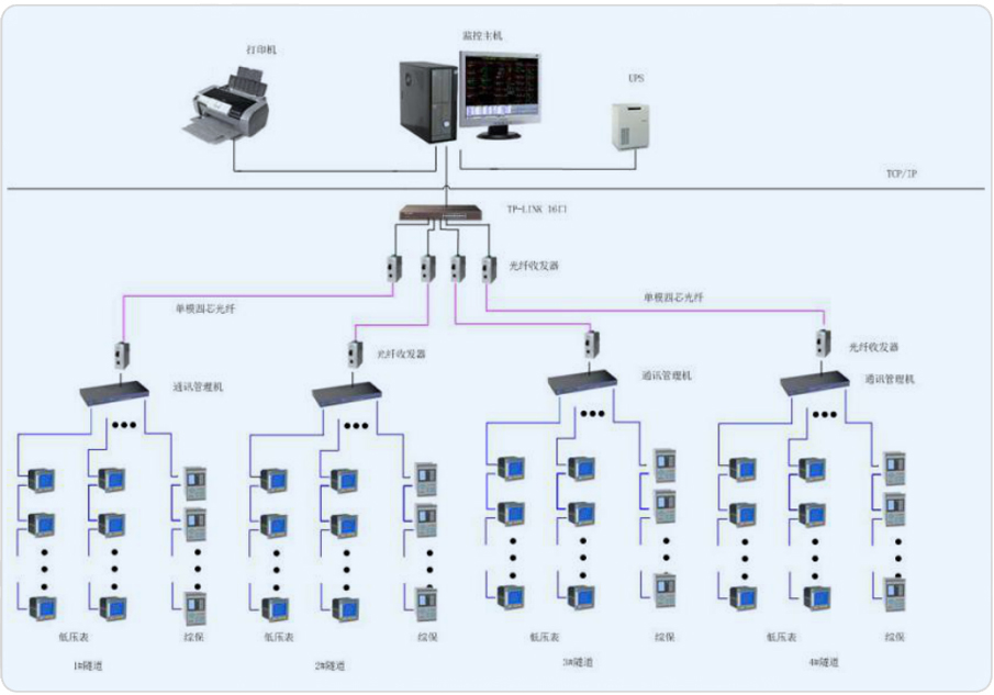 安科瑞電氣股份有限公司于2014年承接該項目電力監控系統,系統通過多功能的電力監控裝置、通訊網絡和計算機軟件,實現高速公路內供配電系統在運行過程中的數據采集、運行監視、事故預警、事故記錄和分析、電能質量檢測、三相不平衡監視、繼電保護等,完成高速公路的安全供電、用電管理、設備管理和運行管理。本次項目主要涉及洛三高速公路隧道中4個配電室內的網絡多功能儀表,149個回路需要監測,監控主機位于收費站。