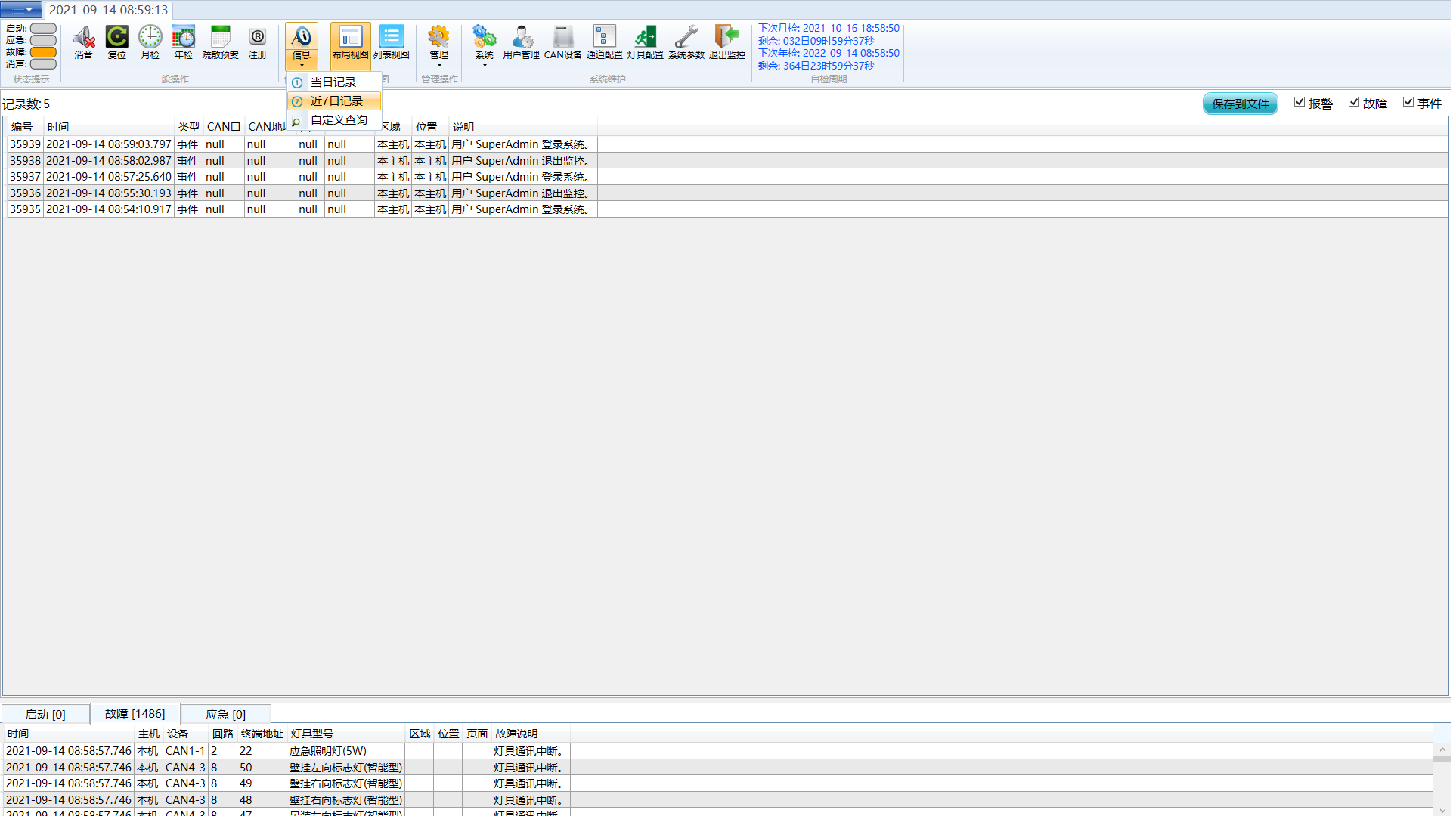 可查看歷史操作、故障、事件信息、可按日期進行查詢。