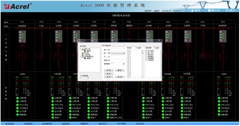 系統為保障系統安全穩定運行,設置了用戶權限管理功能。通過用戶權限管理能夠防止未經授權的操作(如配電回路名稱修改等)??梢远x不同級別用戶的登錄名、密碼及操作權限,為系統運行、維護、管理提供可靠的安全保障。