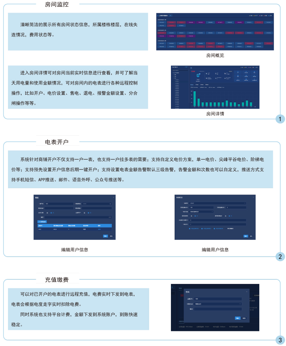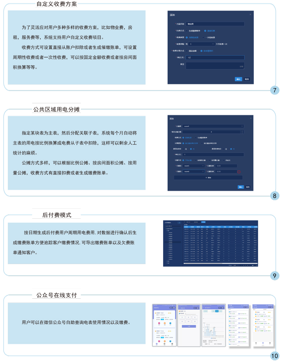 主要完成電能表/水表參數設置,商戶售電/售水管理及能耗管理工作,操作簡便,實現物業公司遠程實時操作實時監控,具有良好的人機界面,能夠有效的統計和管理數據。安裝方便,是用電管理部門、商業廣場和物業小區,提高用電用水管理水平,解決收費難問題的理想產品。