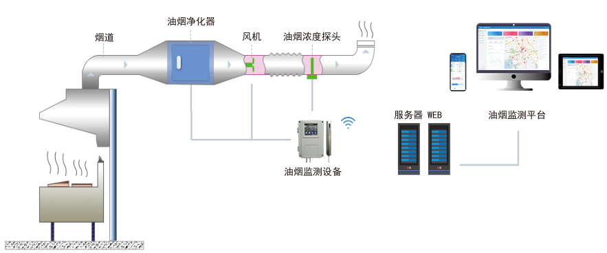 (4)監(jiān)察難度大:餐飲企業(yè)數(shù)量巨大,靠人力監(jiān)管無(wú)法實(shí)現(xiàn)全覆蓋;部分凈化設(shè)備安裝在天花板內(nèi)、高樓平臺(tái)等,導(dǎo)致監(jiān)管人員心有余力不足。
